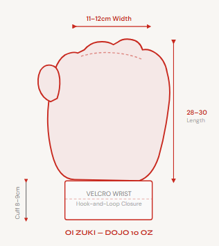 10 oz gloves suit fighters in the 65–78 kg range with a hand circumference of 19–21 cm. Refer to our size chart above for a full breakdown. If you’re on the heavier end or have larger hands, consider the 12 oz for a more comfortable fit.